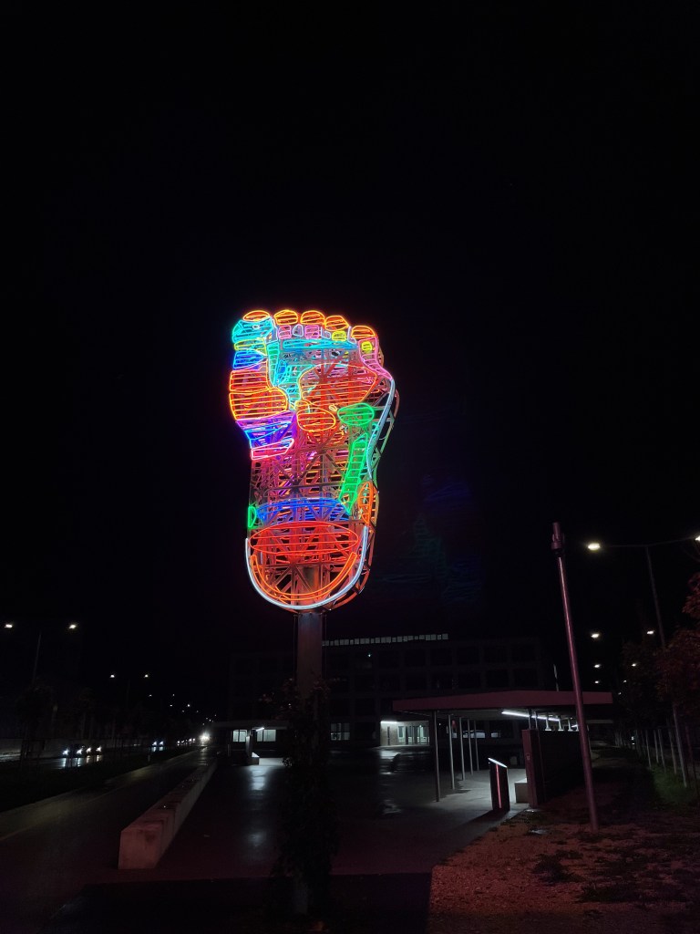 J’ai demandé à 18 élèves de 10VP de répondre à quelques questions sur le pied. Au final, le retour est assez négatif. Ils trouvent qu’il est moche, que les couleurs sont mal choisies, qu’il ne représente pas l’école, … Pour eux, ce pied ne signifie pas grand-chose à part … un pied. J’ai quand même reçu quelques autres réponses comme un arbre, le totem de l’école, le symbole LGBTQ+ et d’autres encore. Certains élèves pensent que le fait que cette sculpture s’allume la nuit est du gaspillage d’électricité. Et à ce sujet-là encore, j’ai reçu très peu de remarques positives mais plutôt : « cela la rend moins belle », « cela ne sert à rien », « ce n’est pas artistique » ou « même cela ne montre pas le bon exemple ». Pas mal de personnes m’ont dit qu’il fallait l’enlever ou qu’il aurait mieux valu investir cet argent dans une bonne cause. Avec une note moyenne de 1.48 (sur 10), le pied ne marque pas le cœur des élèves.