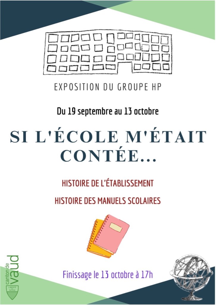 Le projet HP est heureux de vous présenter sa nouvelle exposition “Si l’école m’était contée“. Elle se déroule au 2ème étage du collège des Rives du 19 septembre au 13 octobre 2023.