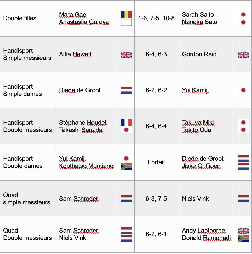 En « simple dames », c’est Coco Gauff qui a remporté le titre, en éliminant Karolina Muchova 6-4 7-5 en demi-finale et Aryna Sabalenka 2-6 6-3 6-2 en finale.