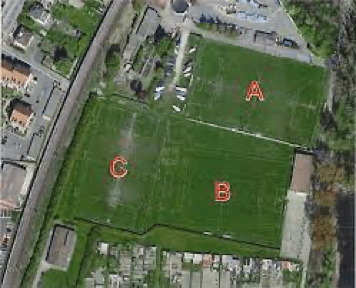 Il y a 3 terrains de foot à Grandson. Le terrain A,B,C. Le plus grand est le B où jouent les joueurs de la Une. Le plus souvent les C jouent sur le terrain A et C. Les D jouent le plus souvent sur le terrains C mais il faut enlever les 2 parties des 16 mètre du vrai terrain sinon le terrains est trop grand pour les D.