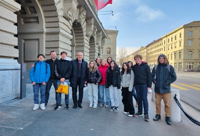 Le lundi 18 décembre 2023, cinq élèves de 11ème année du collège des Rives sont partis une journée rencontrer leurs correspondants allemands à Berne, pour définir qui sera son camarade d’échange et passer une demi-journée avec eux pour un premier contact.