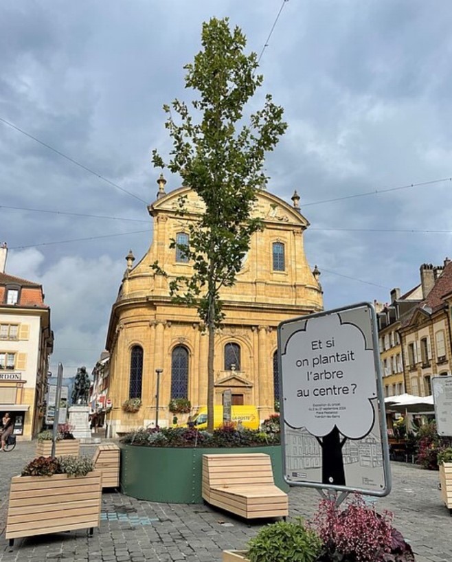 Durant tout le mois de septembre un arbre a été mis en place sur la place Pestalozzi. La population yverdonnoise a dû procéder à un sondage pour savoir s’ils étaient pour ou contre l’idée de planter l’arbuste au centre-ville. Dans d’autres villes de Suisse des arbres ont été mis en place, comme à Sion par exemple. Cette plantation pourrait réduire la chaleur de quelques 6 degrés.