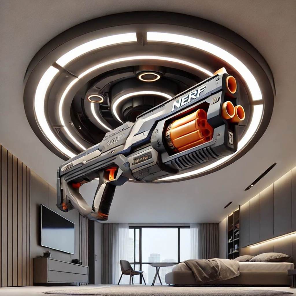 C’est un pistolet-jouet qui tire sur les intrus qui viennent dans votre chambre avec des projectiles en mousse.