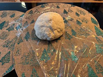 Reprenez la pâte pour la pétrir de nouveau pendant 3 minutes puis remettez-la dans le film plastique et laissez-la reposer 1 heure.