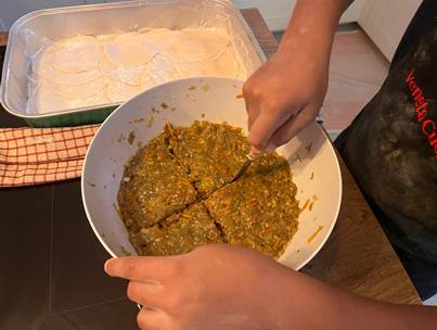 La recette sera séparée en deux, la pâte et la farce, mais pendant que la pâte repose nous allons faire la farce.