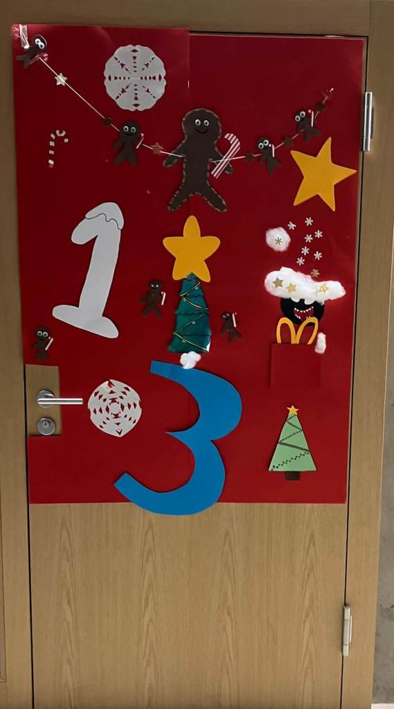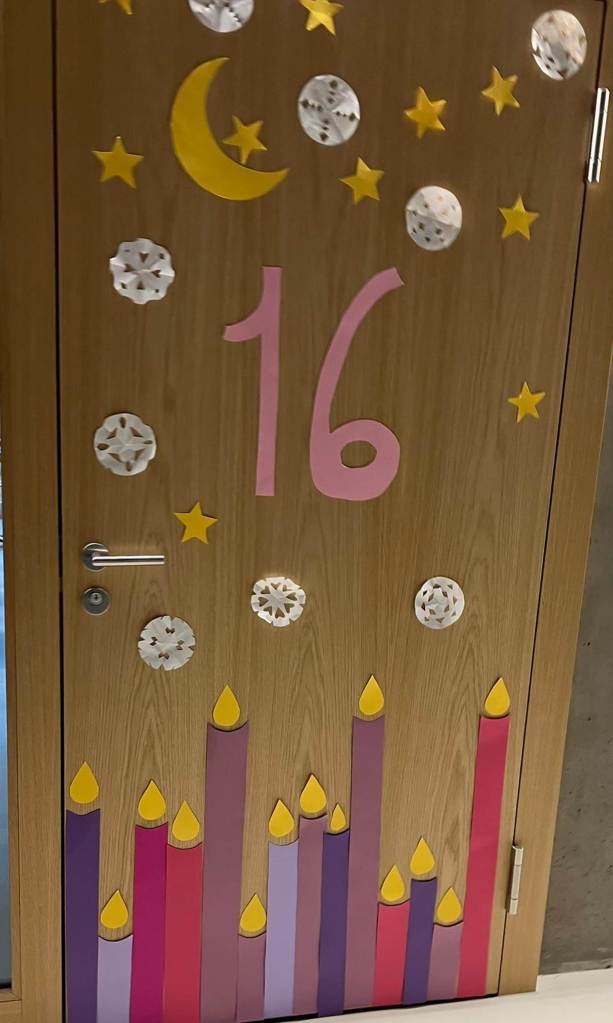 Pour Noël l’établissement de Felice a décidé de décorer les portes de nos classes. Chaque classe pouvait s’inscrire afin de participer à une des 24 portes.